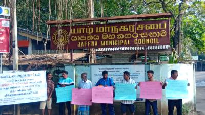 யாழ்ப்பாண நகர அப்பிள் கடை வியாபாரிகள் இன்றைய தினம் வெள்ளிக்கிழமை யாழ். மாநகர சபை முன்பாக ஆர்ப்பாட்டத்தால் ஈடுபட்டனர். யாழ்ப்பாண மாநகர சபை...