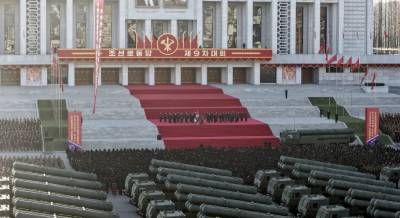அணு ஆயுதங்களை ஏவும் திறன் கொண்ட மிகப்பெரிய, பல ராக்கெட் ஏவுகணைகளை அறிமுகப்படுத்தும் விழாவில் வட கொரிய தலைவர் கிம் ஜாங் உன் கலந்து...