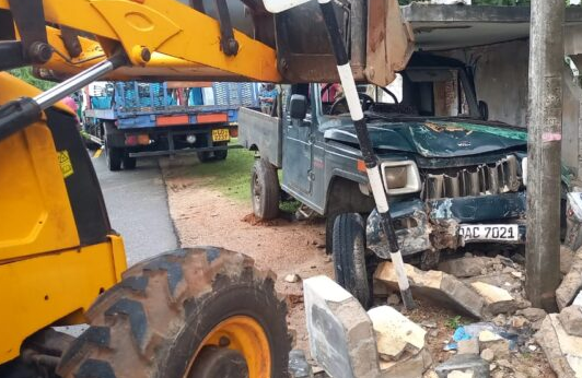 கோப்பாய் பகுதியில் பேருந்து தரிப்பு நிலையத்தை உடைத்துக் கொண்டு புகுந்த கப் ரக வாகனம் விபத்துக்குள்ளானது.