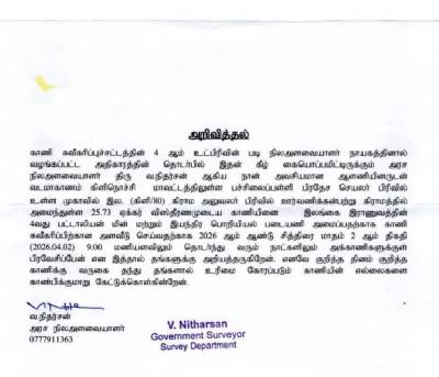 கிளிநொச்சி இயக்கச்சி பகுதியில் இராணுவ தேவைக்காக 25ஏக்கர் காணியை சுவீகரிக்கும் முயற்சிக்கு எதிராக நாளைய தினம் வியாழக்கிழமை எதிர்ப்பு போராட்டத்திற்கு அனைவரையும் அணி...